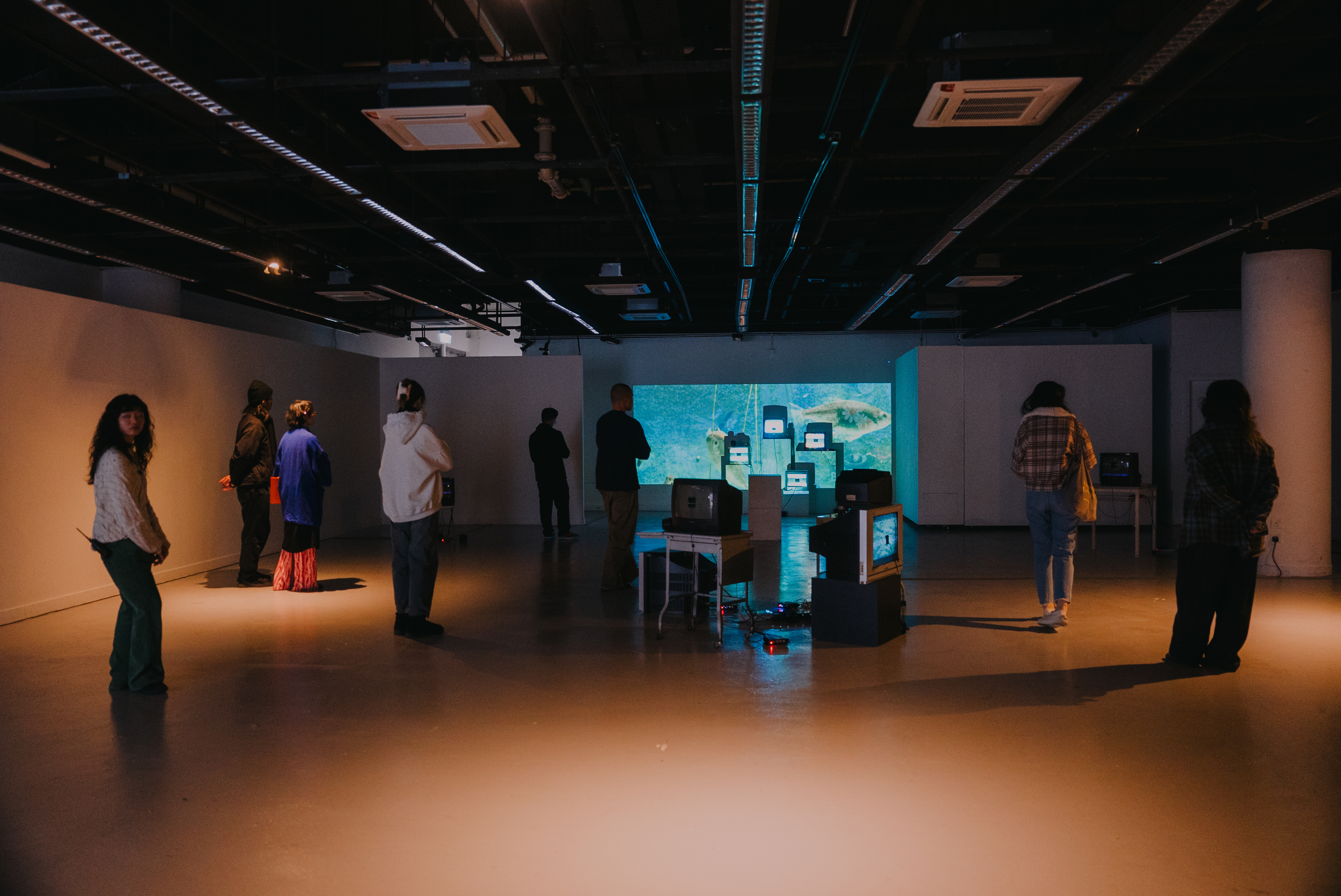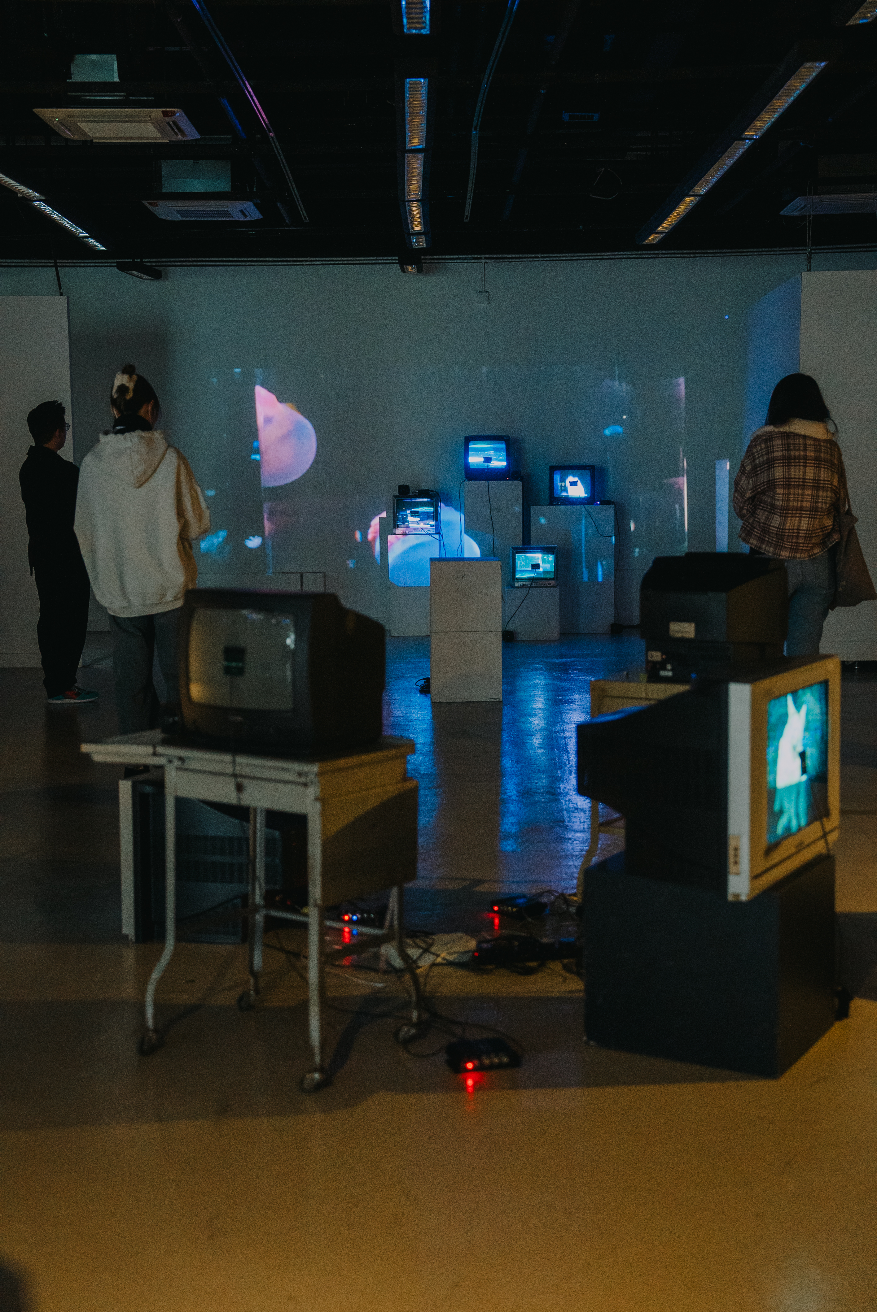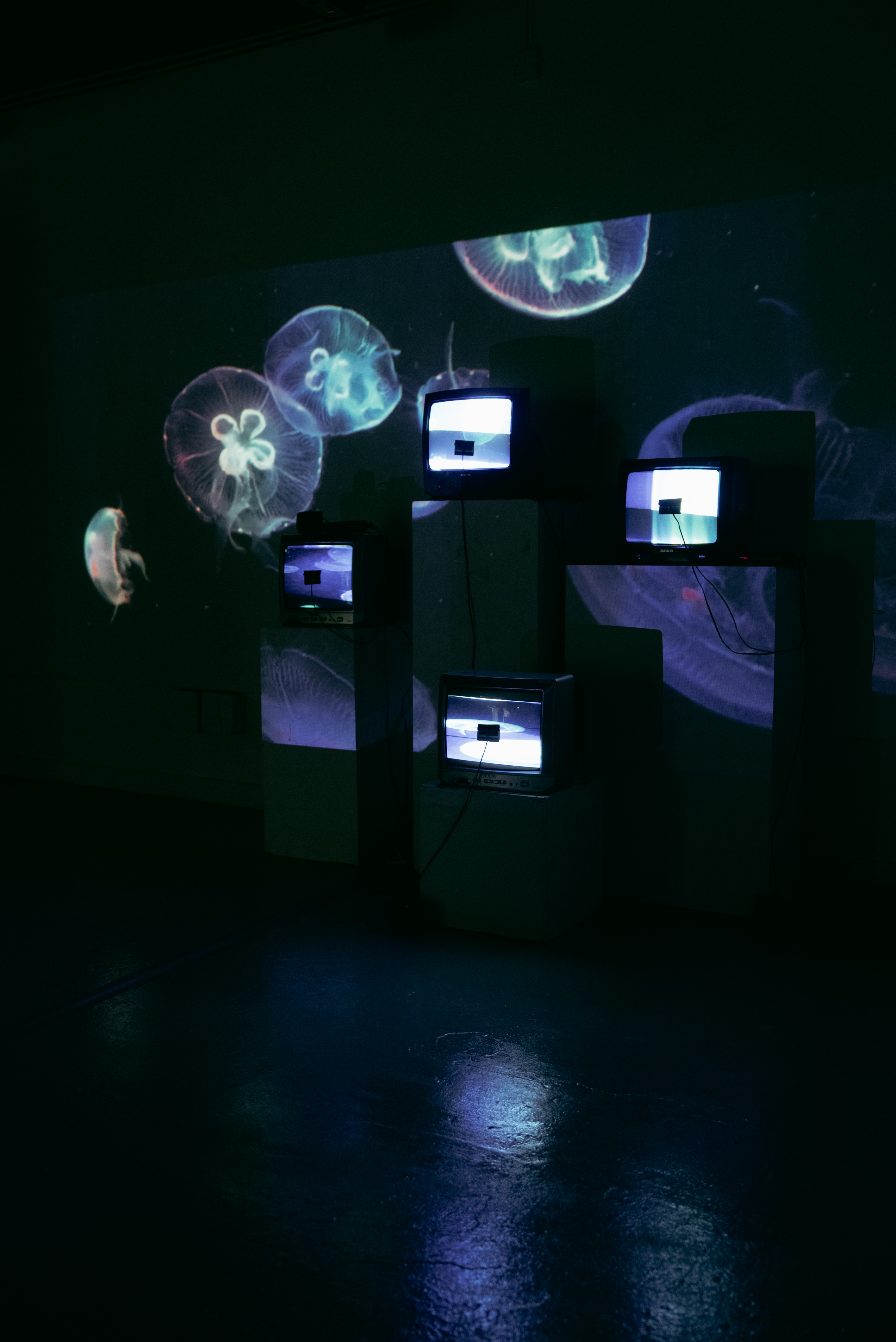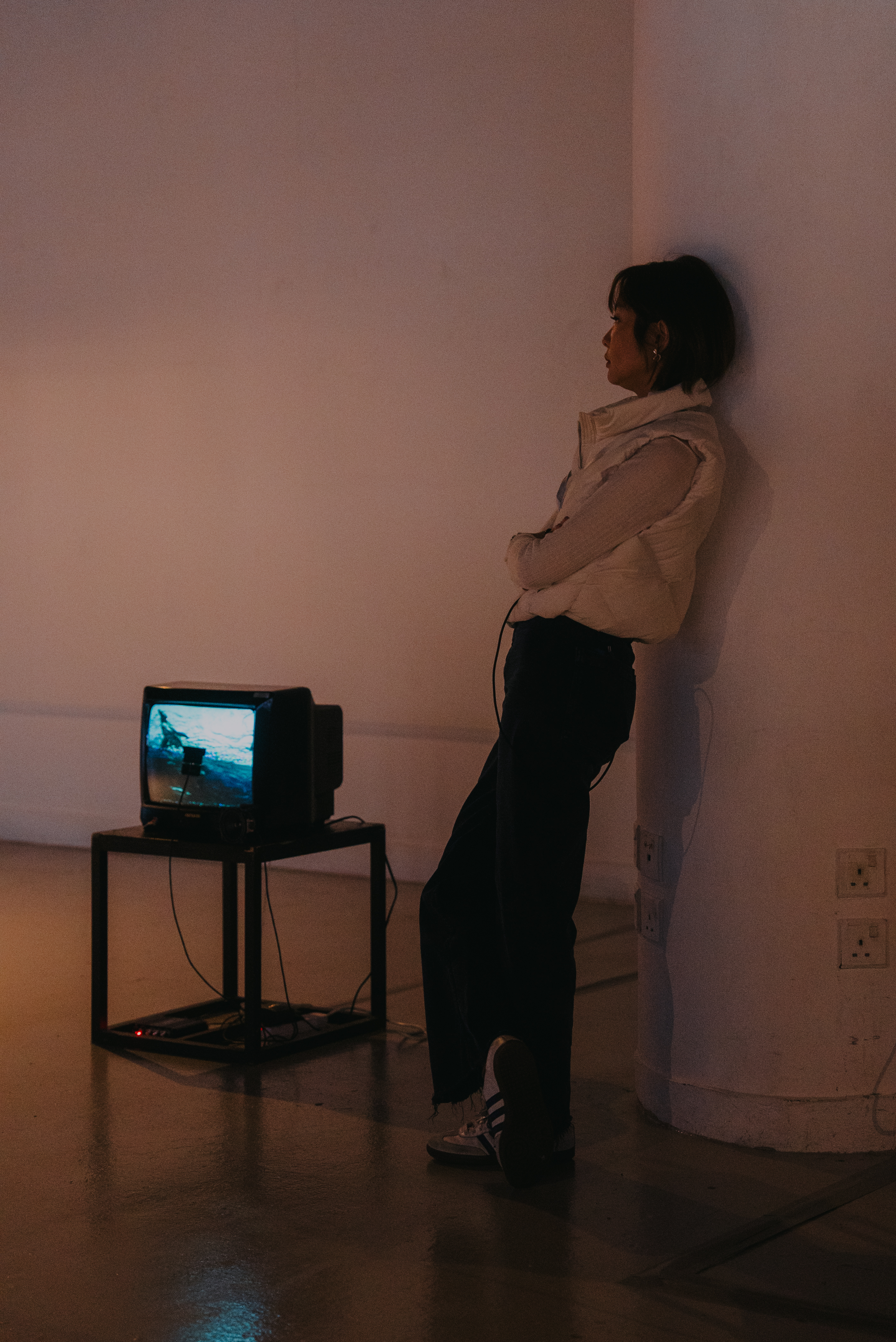 若將畫面視為獨立的存在,並以此生成聲音,會帶來怎樣的體驗?作品以此為概念,運用多台映像管電視(CRT TV)呈現影像,並結合太陽能板,將影像的光轉換為聲音。在這裡,聲畫依然同步,但所呈現的質感卻截然不同。起伏不定的海浪,轉化為載浮載沉的沙沙聲;前方急速飛馳的車,駛出短促且有力的低吟;工人在工地上埋頭苦幹的身影,卻變成有一搭沒一搭的拍子。尋常影像在訊號轉換的過程中,衍變出無以言喻的聲景——它們原本就隱匿於影像之中,只是未曾被察覺。